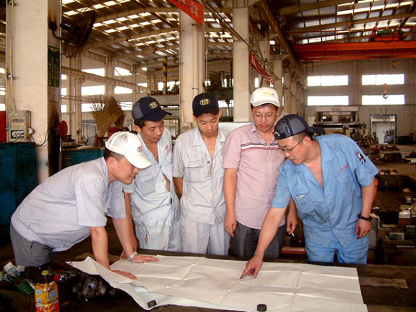 配片由技術部與鉗工骨干組成的專家組正在研討整改難點