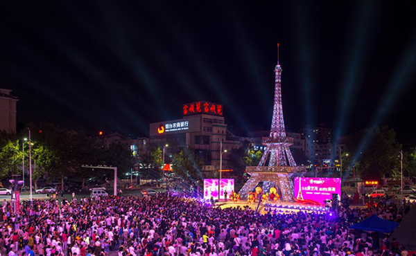 新都匯廣場(chǎng)西北側(cè)建有“埃菲爾鐵塔”大舞臺(tái),南堯集團(tuán)投資500萬(wàn)元打造,按照巴黎埃菲爾鐵塔原樣1:10比例設(shè)計(jì)制作而成,塔身高達(dá)29米,相當(dāng)于10層樓高,并配備燈光秀?!鞍7茽栬F塔”一經(jīng)亮相,就吸引了大批市民前來(lái)觀(guān)賞拍照,仿佛帶人穿梭去法國(guó)巴黎,感受一場(chǎng)異域風(fēng)情的浪漫感。底部舞臺(tái)部分面積約為400平米,與周邊休閑座椅、綠植呼應(yīng),構(gòu)成1000平米的具有風(fēng)格的景觀(guān)。有文藝演出的時(shí)候,這里就是社區(qū)文化百姓大舞臺(tái),也是商品的展示平臺(tái);平日閑暇時(shí)間也是居民娛樂(lè)休閑的一個(gè)非常好的去處。南堯集團(tuán)專(zhuān)門(mén)圍繞“埃菲爾鐵塔”建設(shè)百姓大舞臺(tái),形成了一套社區(qū)文化演出模式,為老百姓免費(fèi)送上精神文化大餐。