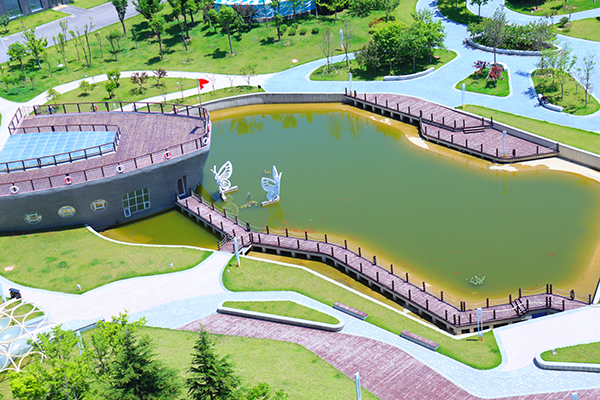 不僅僅是一個(gè)綠化的搭配,其實(shí)是山水林木、花草植被與人文體驗(yàn)交融的一個(gè)休閑公園,這在煙臺(tái)是比較稀有的。在推進(jìn)景觀(guān)帶建設(shè)過(guò)程中,園區(qū)巧妙利用了山形地貌和綠色植被,在保留原有景觀(guān)特色,依山傍水就勢(shì)布局建設(shè)。景觀(guān)帶引入的苗木種類(lèi)十分豐富,有銀杏、櫻花、松柏、龍柏、黃楊、美人梅、國(guó)槐、海棠、月季等,綠樹(shù)紅花,灌木成簇,再加上依傍五卒山,整個(gè)形成了一個(gè)小的自然生態(tài)圈。